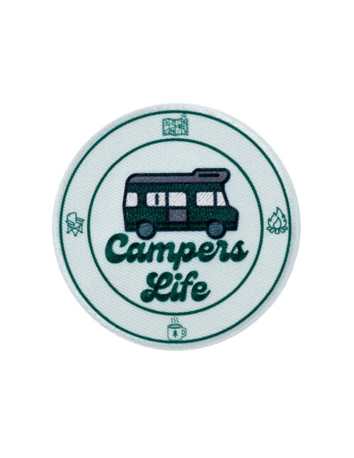 Diese liebevoll gestaltete Campers Life-Applikation von Mono Quick ist ein echter Hingucker für Kleidung, Taschen oder Accessoires.